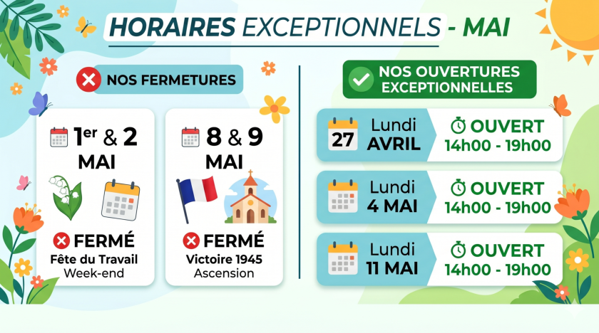 Pour vous accueillir dans des conditions optimales de prise en charge et de confort, nos horaires d'ouverture sont les suivants: